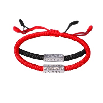 Welwish สร้อยข้อมือเชือกถัก6ตัวอักษร,สร้อยข้อมือแบบถักแฮนด์เมดปรับได้สำหรับผู้หญิง