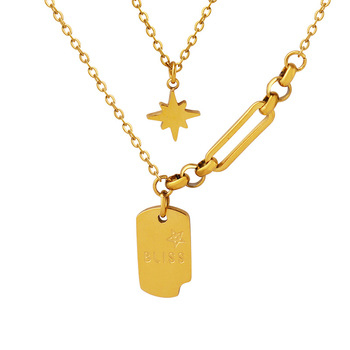 สร้อยคอสแตนเลสสองชั้นแฟชั่นกันน้ำสำหรับสุภาพสตรีสร้อยคอแบบคอนเวอร์เตอร์สองชั้น